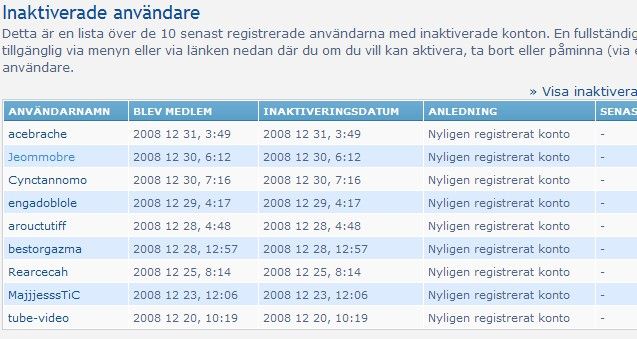 Då kan det vara sådana, vars e-post hamnat i skräpkorgen. Eller sådana som skrivit in fel mailadress. Om du vill, så kan du kontakta dem personligen. Det går också att påminna dem med funktionen som finns till för det i phpBB3. Men det är också ett automatiskt brev, så det kan ju också hamna i skräpkorgen för dem. Personlig kontakt fungerar bäst. Du kan skriva å fråga ifall du ska aktivera deras konto.