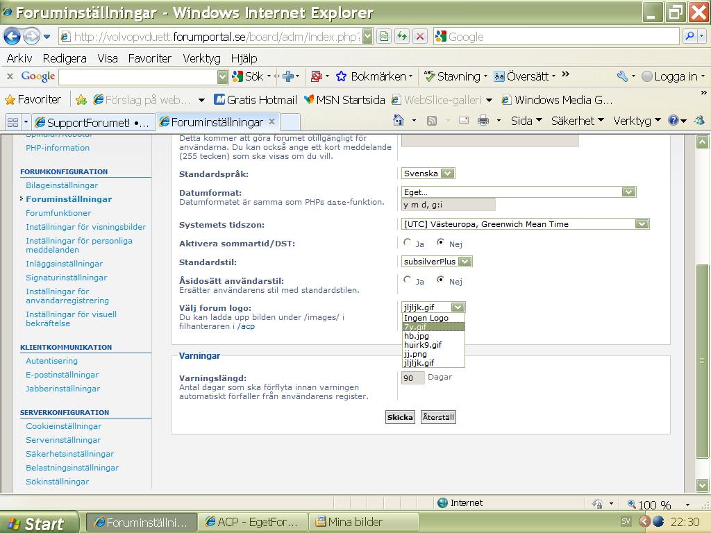JÖSSES  bara gissningslekar... detta står i posten om det är detta du menar SE RÖD TEXT... min bild är uppladad, bilden ligger där forumsloggan ligger SE BILD, där ska den väll inte ligga ??? hur får jag bilden synlig på forumet där den är tänkt att synas !! NOTERA! Om laddar upp filer till images blir den absoluta sökvägen: http://images.volvopvduett.forumportal.se/ eller http://volvopvduett.forumportal.se/volv ... eb/images/