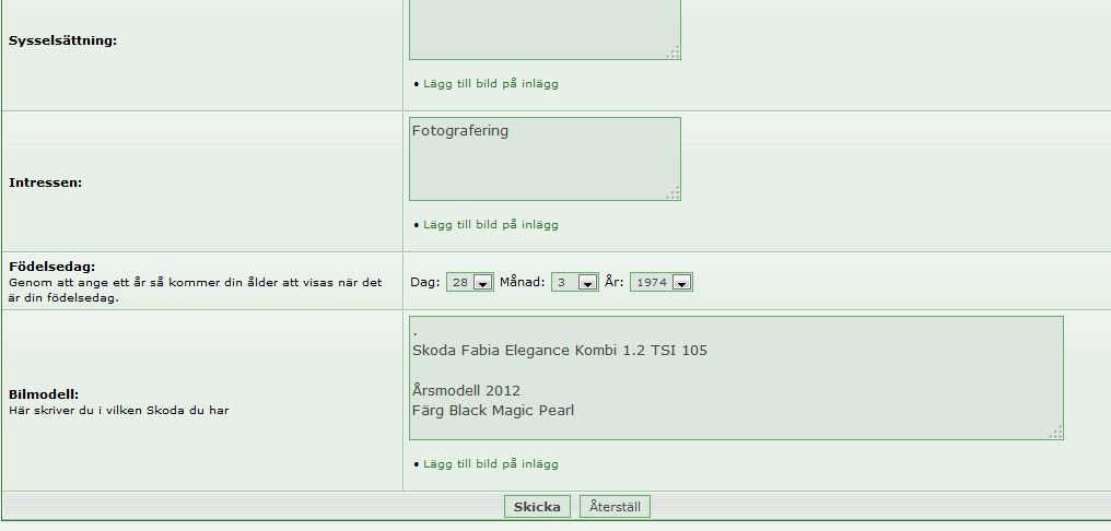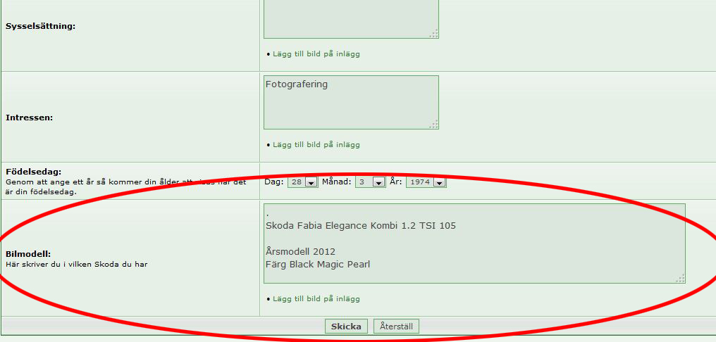 För ett tag sedan så la jag till en egen ruta inne på kontrollpanellen - ändra profil.......som man kunde lägga in vilken bil man hade osv.
